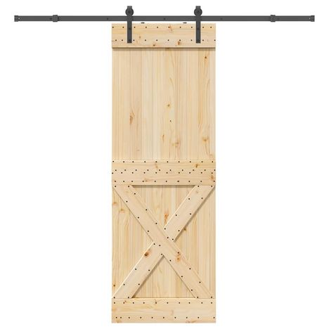 Porte coulissante et kit de quincaillerie 80x210 cm pin massif