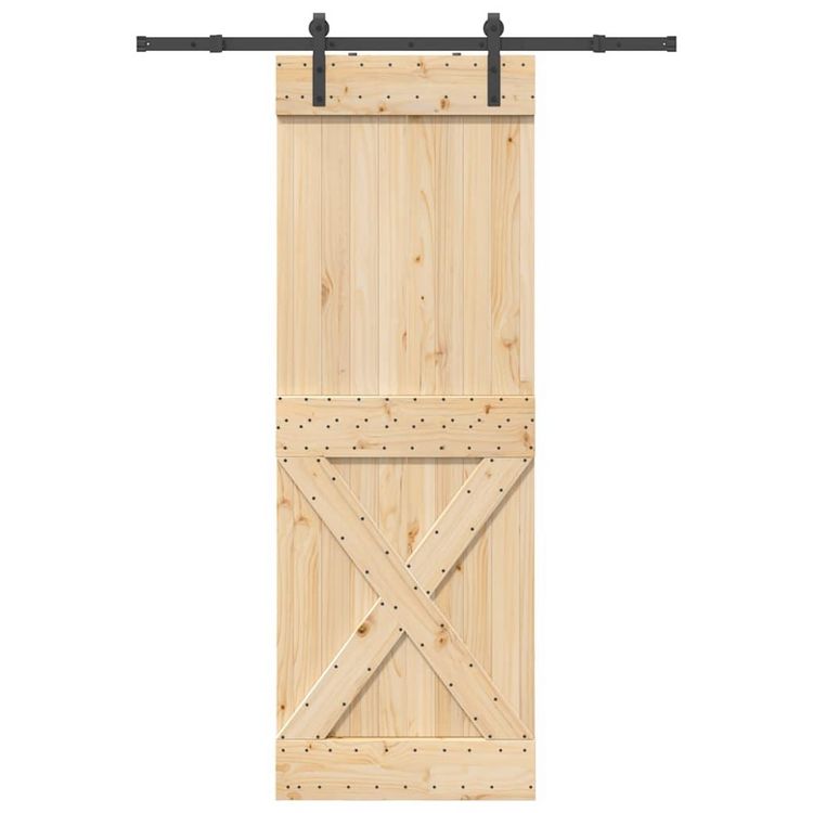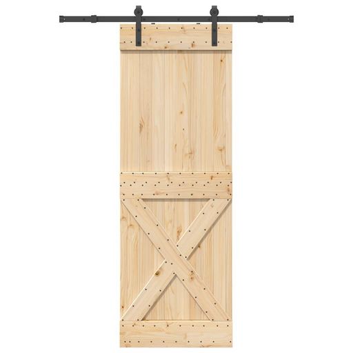 Porte coulissante et kit de quincaillerie 80x210 cm pin massif