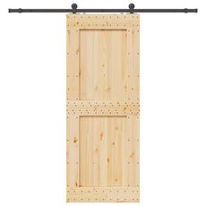Porte coulissante et kit de quincaillerie 90x210 cm pin massif