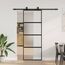 Porte coulissante kit quincaillerie noir 76x205 cm verre trempe