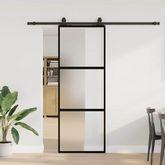 Porte coulissante kit quincaillerie noir 76x205 cm verre trempe