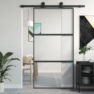 Porte coulissante noir 102,5x205 cm verre trempe aluminium