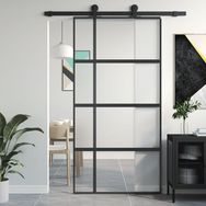 Porte coulissante noir 102,5x205 cm verre trempe aluminium