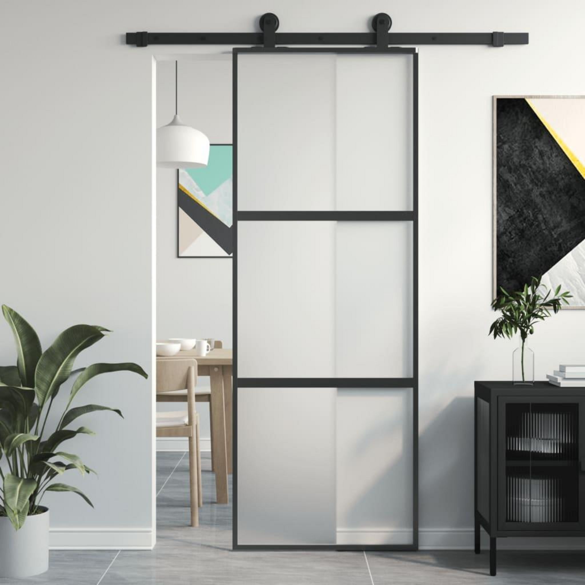 Porte coulissante noir 76x205 cm verre trempe aluminium