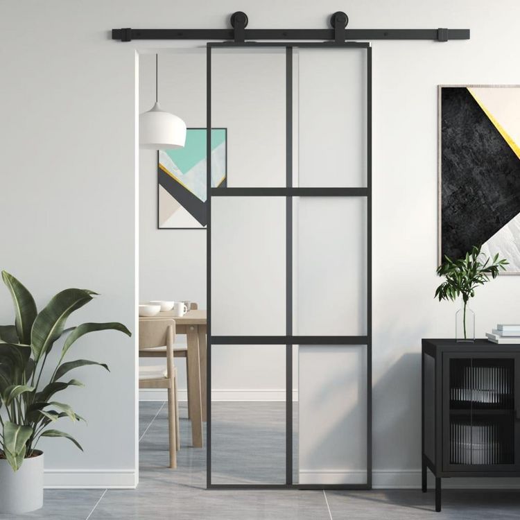 Porte coulissante noir 76x205 cm verre trempe aluminium