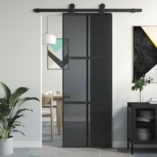Porte coulissante noir 76x205 cm verre trempe aluminium