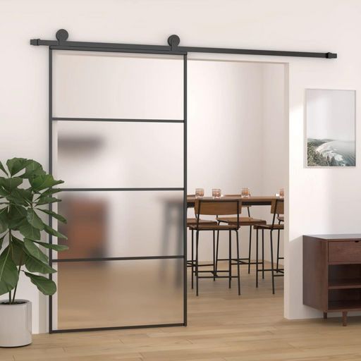 Cette porte coulissante cree une transition gracieuse d'une piece a l'autre. Elle fournit la solution parfaite pour economiser de l'espace. Materiau stable : le cadre en aluminium et les panneaux en ESG ajoutent une stabilite supplementaire. Bonne intimite : le design givre protege votre vie privee