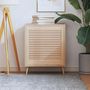 Cette porte d'armoire à persiennes en bois de pin massif allie robustesse et esthétique intemporelle. Le pin naturel offre une excellente résistance aux variations climatiques, idéal pour les pièces humides comme les cuisines ou salles de bain. Son traitement de surface préserve le matériau tout en mettant en valeur les veinures du bois.