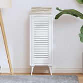 Cette porte d'armoire à persiennes blanc 69x29,5 cm allie esthétique moderne et praticité. Son motif à lamelles verticales apporte une touche d'élégance intemporelle tout en permettant une ventilation optimale, idéale pour les espaces de rangement nécessitant une circulation d'air.