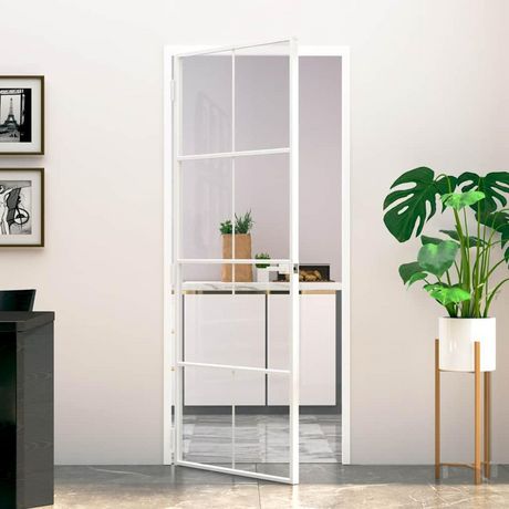 Porte d'interieur Blanc 83x201,5 cm Trempe verre aluminium fin