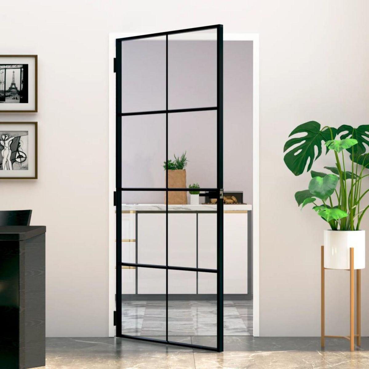 Porte d'interieur Noir 93x201,5 cm Trempe verre aluminium fin