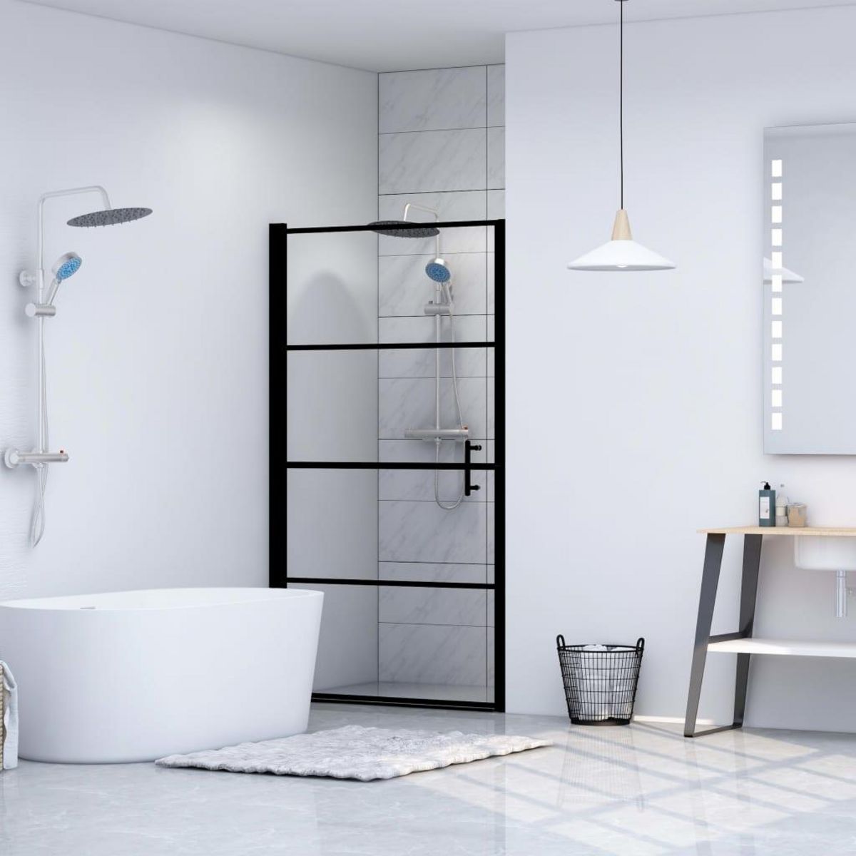 Cette porte de douche moderne apporte un air d'esthetique industrielle a votre salle de bain ! Elle offre un style exquis avec des materiaux haut de gamme pour creer une cloison de douche minimaliste qui non seulement a fiere allure mais qui fonctionne magnifiquement.