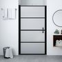 Notre porte de douche est dotee d'un verre de securite de 5 mm d'epaisseur soutenu par un cadre en aluminium robuste, securisant la structure une fois montee. Le verre depoli offre plus d'intimite. Le cadre reglable permet de s'adapter facilement a toutes les tailles et configurations de salle de bain. La poignee en acier inoxydable, avec un design elegant, ajoute un charme elegant. La cloison de douche est facile a nettoyer , tout ce que vous avez a faire est d'effacer les marques laissees l'eau !