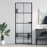 Porte interieure mince noir 83x201,5 cm verre trempe aluminium
