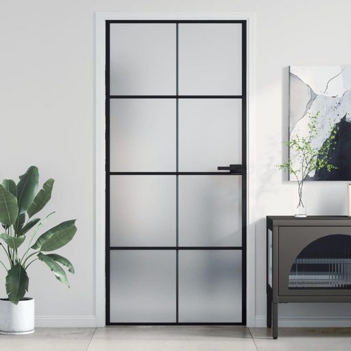 Porte interieure mince noir 93x201,5 cm verre trempe aluminium