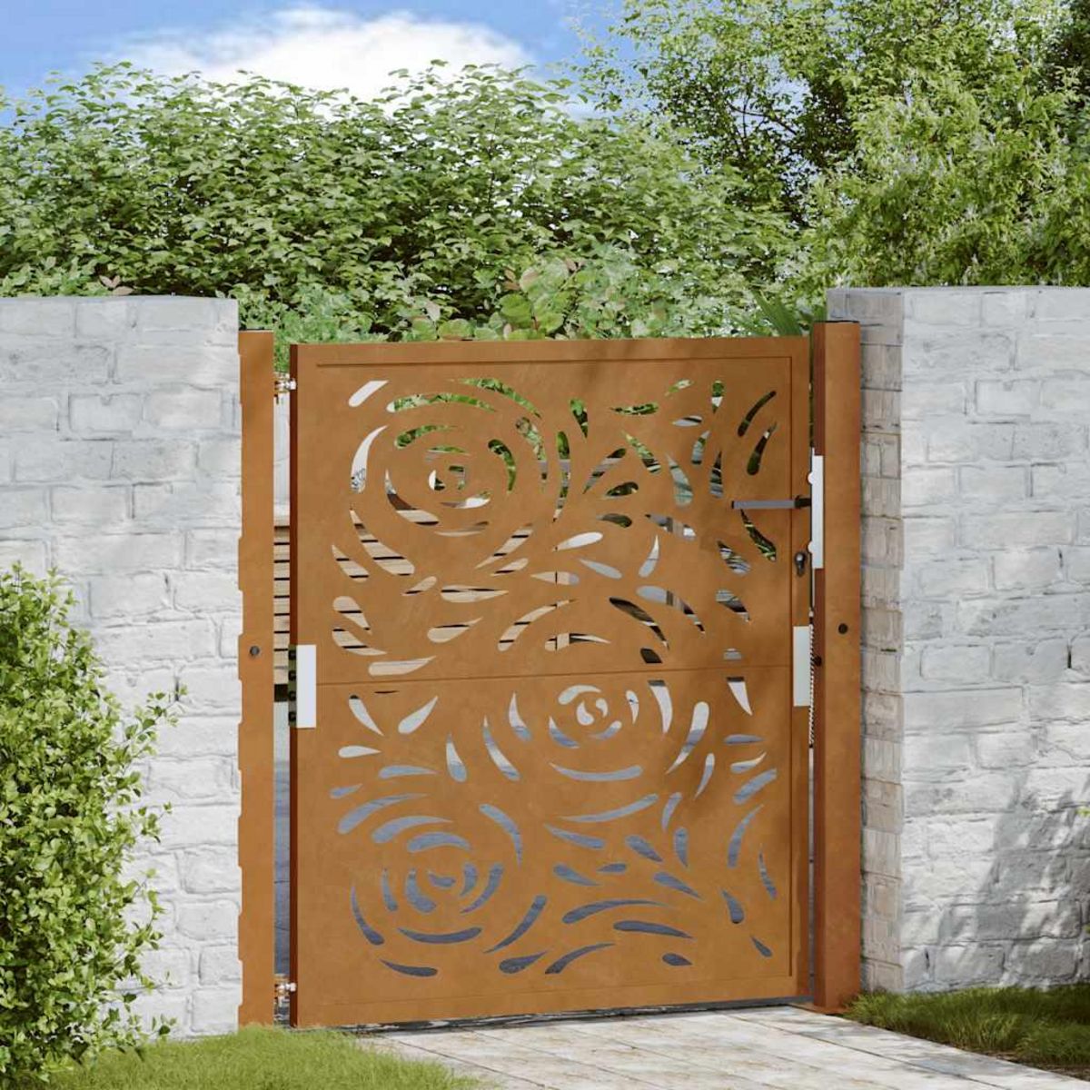 - Construction robuste : ce portail de cloture est fabrique en acier resistant aux intemperies. L'acier resistant aux intemperies est anticorrosif par nature. Il developpe une couche protectrice contre la corrosion lorsqu'il est expose pour la premiere fois aux conditions atmospheriques. Il n'est donc pas necessaire de le peindre. Cela vous permet d'economiser sur les couts d'entretien et de reparation. La couleur brune caracteristique de l'acier patinable ne manquera pas d'attirer l'attention. Enfin, l'acier patinable est exceptionnellement durable et resistera a l'epreuve du temps.