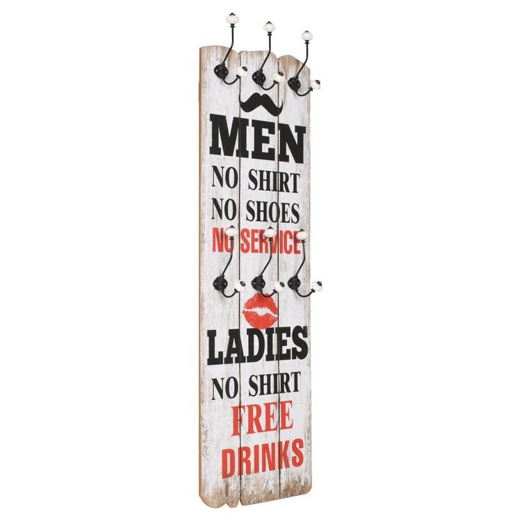 Avec son imprime de style vintage qui affiche « Men no shirt no shoes no service ladies no shirt free drinks », ce porte-manteau mural avec 6 crochets deviendra un veritable article attrayant que vos invites remarqueront immediatement.