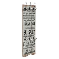 Avec son imprime de style vintage qui affiche « Play room rules Ignore mean ones Thank you Be silly Play fair Use your imagination », ce porte-manteau mural avec 6 crochets deviendra un veritable article attrayant que vos invites remarqueront immediatement.