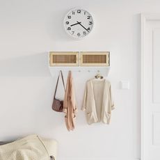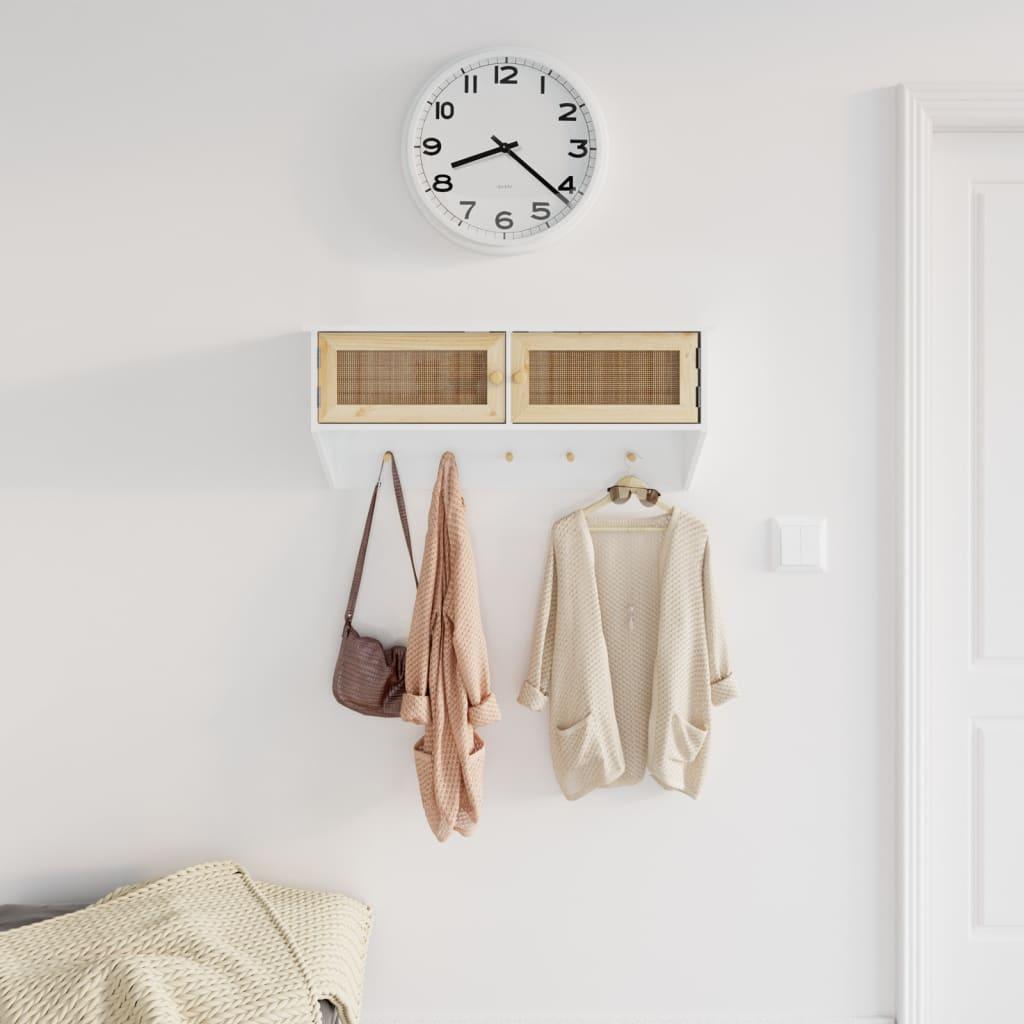 Porte-manteau mural Blanc Bois d'ingenierie et rotin naturel