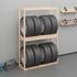 Ce porte-pneus en bois est un excellent choix pour le rangement dans le garage, car il offre beaucoup d'espace pour garder vos pneus bien ranges.