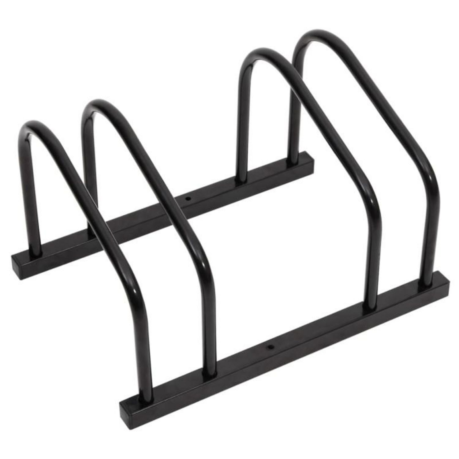 Ce porte-vélos VIDAXL en acier noir galvanisé offre une solution durable pour stocker jusqu'à 2 bicyclettes. Son design compact (43,5 x 33 x 26 cm) s'adapte aux espaces réduits tout en maintenant les vélos stables grâce à des supports à pneus de 6 cm de largeur.