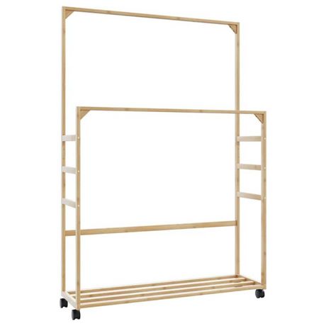 Porte vêtements et étagères et roulettes 90x35x155 cm bambou