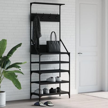Porte vêtements et rangement des chaussures noir 70x34x184 cm
