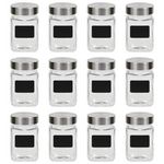 - 12 pots en verre transparent de 300 ml avec couvercles argentés