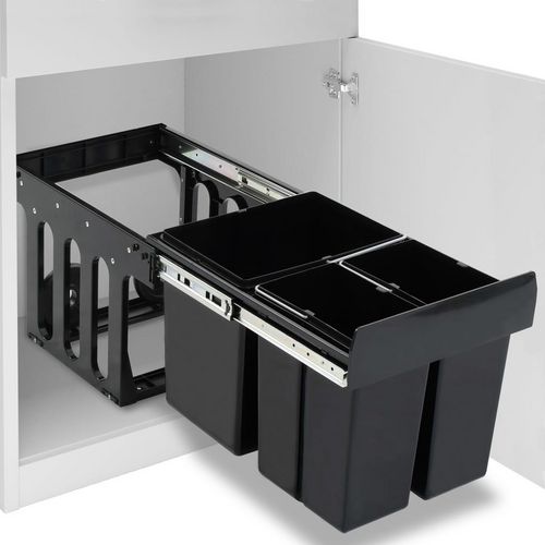 Cette poubelle est une solution ideale pour toute cuisine. Elle peut facilement s'inserer dans le placard de la cuisine pour garder les dechets indesirables hors de vue. Elle comprend trois bacs separes, ce qui rend le tri de recyclage un jeu d'enfant. Les bacs sont entierement amovibles pour un nettoyage en profondeur. De plus, le mecanisme de fermeture en douceur protege vos meubles et est plus sur pour les enfants. Le couvercle et le boîtier sont en ABS et en plastique de qualite, sans corrosion pour plus de durabilite.