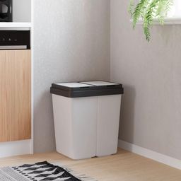 Cette poubelle double avec deux compartiments de separation est ideale pour le tri des dechets et le recyclage hygienique. Materiau durable : la double poubelle de cuisine est fabriquee en PP, un materiau apprecie pour sa haute resistance aux dommages, sa robustesse et sa qualite durable. Cela rend