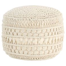 En savoir +Asseyez-vous ou posez vos pieds sur le pouf et detendez-vous ! Ce pouf contemporain et chic en macrame apportera une touche decorative et conviviale a votre decoration interieure.