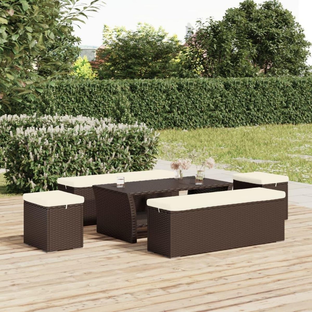 Poufs avec coussins lot de 2 marron 40x30x40 cm resine tressee
