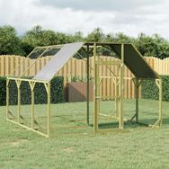 Ce poulailler est un choix parfait comme enclos d'extérieur pour garder vos poulets, poules, canards et autres petits animaux confortables et en sécurité. Bois de pin massif : le bois de pin massif est un matériau naturel magnifique. Le bois de pin a un grain droit et les nœuds donnent au matériau son aspect caractéristique et rustique.Toit en polyester : le toit est composé à 100 % de polyester, qui est résistant à l'eau et le choix parfait pour les conditions humides ou pluvieuses.Porte verrouillable : le poulailler dispose d'une porte verrouillable facile à ouvrir pour garder les animaux en lieu sûr.Entretien facile : la cage à poulet est facile à nettoyer avec un chiffon humide ou de l'eau du robinet pour un entretien facile.Treillis métallique : grâce au treillis métallique, vous pouvez toujours garder un œil sur vos animaux. Remarque :Chaque produit est livré avec un manuel de montage dans la boîte pour un montage facile. Matériau : bois de pin massif, imprégné de vert, acier galvanisé, polyesterDimensions totales : 268 x 300 x 190 cm (l x P x H)Matériau : bois de pin massif, imprégné de vert, acier galvanisé, polyesterDimensions totales : 268 x 300 x 190 cm (l x P x H)