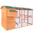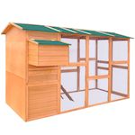 Fait en pinede de haute qualite, le poulailler est durable. Le tissu vert etanche sur les toits protege de la pluie, creant des endroits chauds et confortables pour se reposer a l'interieur de la cabane.