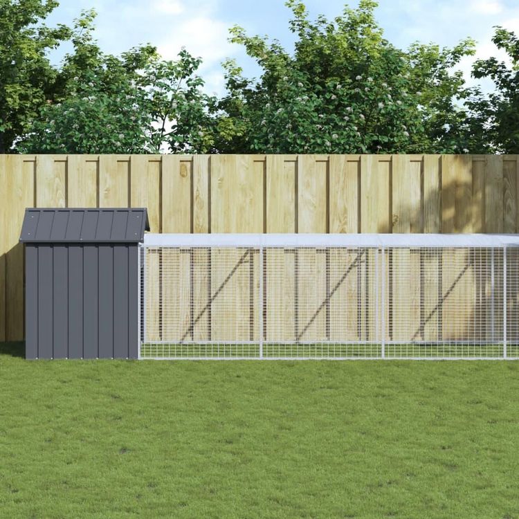 Poulailler avec cour anthracite 117x813x123 cm acier galvanise