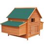 Fait en pinede de haute qualite, le poulailler est durable. Le tissu vert etanche sur les toits protege de la pluie, creant des endroits chauds et confortables pour se reposer a l'interieur de la cabane.