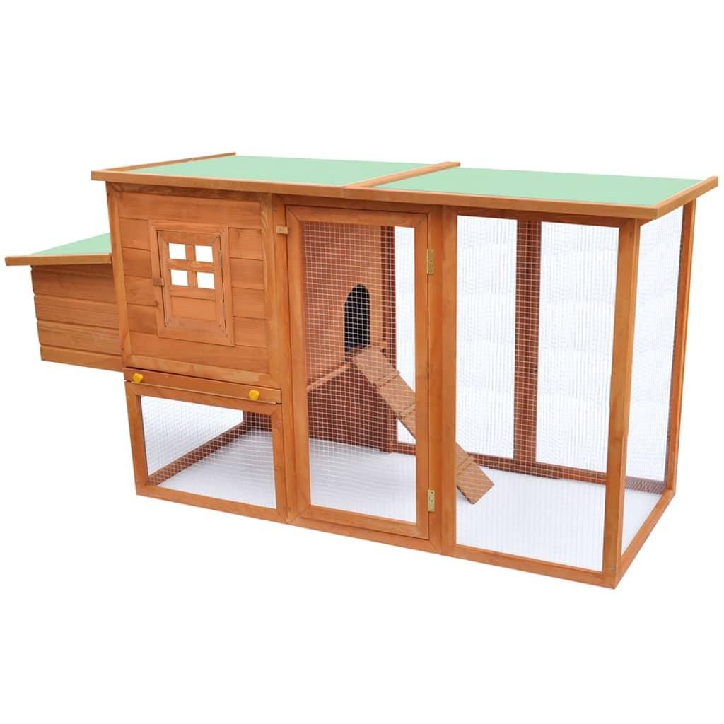 Cette cage a poulet en bois offre un grand endroit confortable.