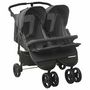 La poussette double dispose d'un cadre en acier, ce qui la rend robuste et durable. Le dossier et le repose-pied sont reglables en plusieurs positions, offrant un maximum de confort pour vos enfants. L'auvent rond les protege de maniere fiable de la lumiere directe du soleil. De plus, le pare-chocs avant offre une securite optimale, les empechant de tomber. Le panier pratique inclus est ideal pour ranger les articles pour bebe. Cette poussette double est pliable pour un rangement et un transport faciles.