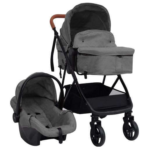 Poussette pour bebe 3-en-1 Gris clair et noir Acier