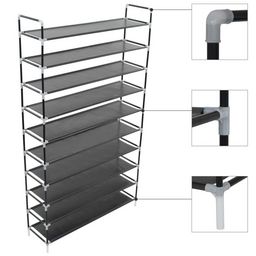 Range-chaussures avec 10 etageres Metal et Tissu non tisse Noir