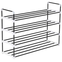 Il a une structure tubulaire en metal, qui est legere mais robuste, ce qui rend le porte-chaussures facile a deplacer et assez durable. Il dispose de quatre etageres genereuses qui offrent suffisamment d'espace pour ranger vos chaussures et les mettre hors vue.