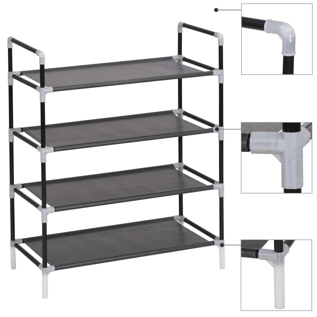 Range-chaussures avec 4 etageres Metal et Tissu non tisse Noir