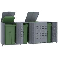 Rangement a roulettes pour poubelles pour 4 bacs gris acier