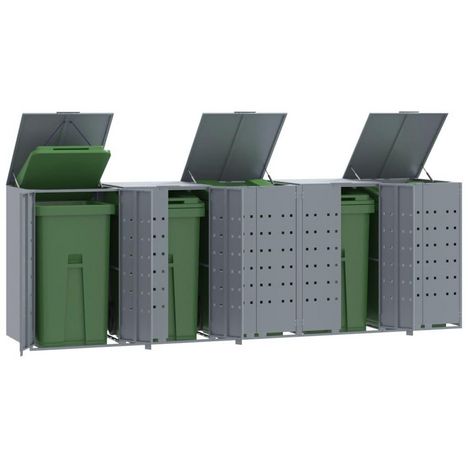 Rangement a roulettes pour poubelles pour 5 bacs gris acier