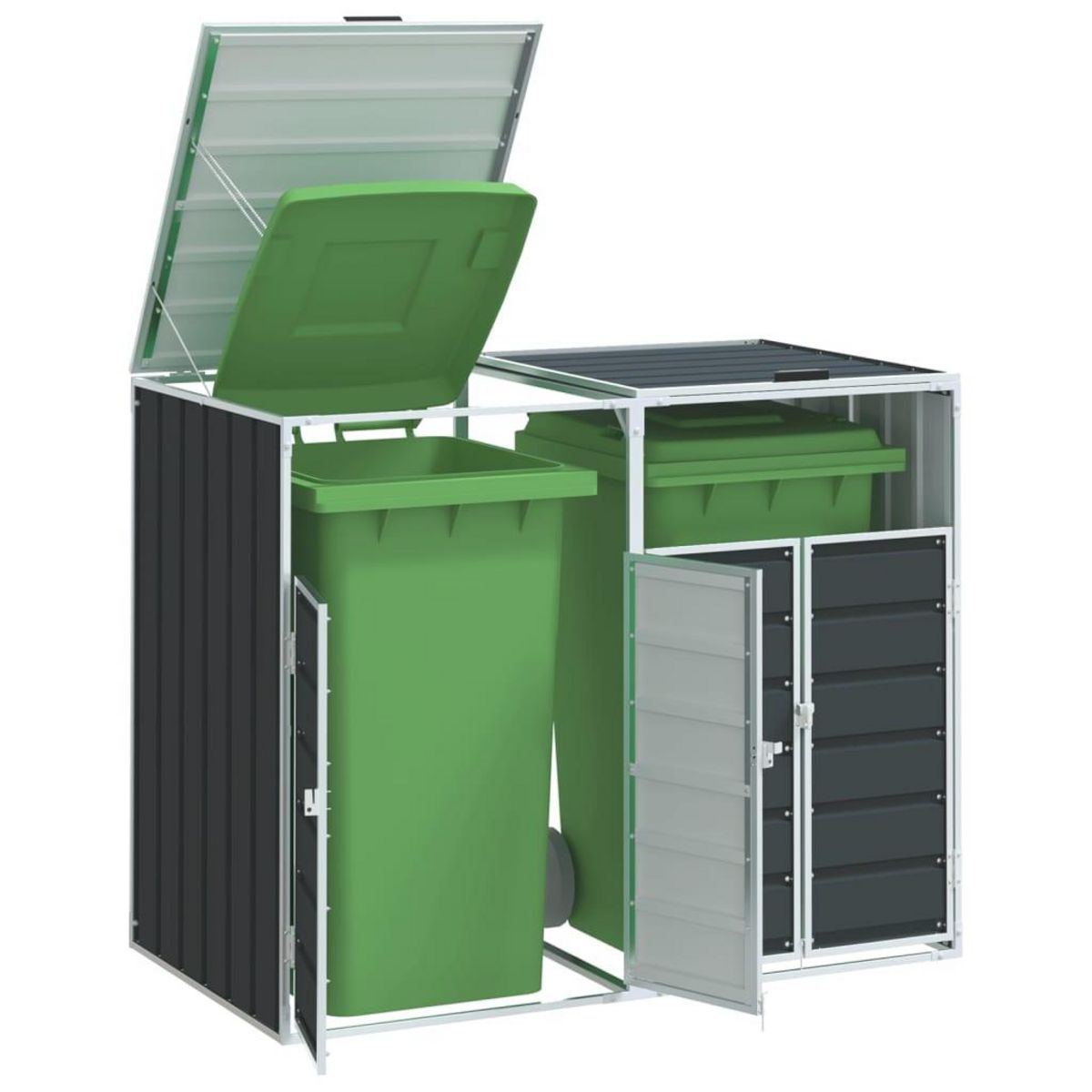 Rangement a roulettes pour poubelles pour deux bacs acier
