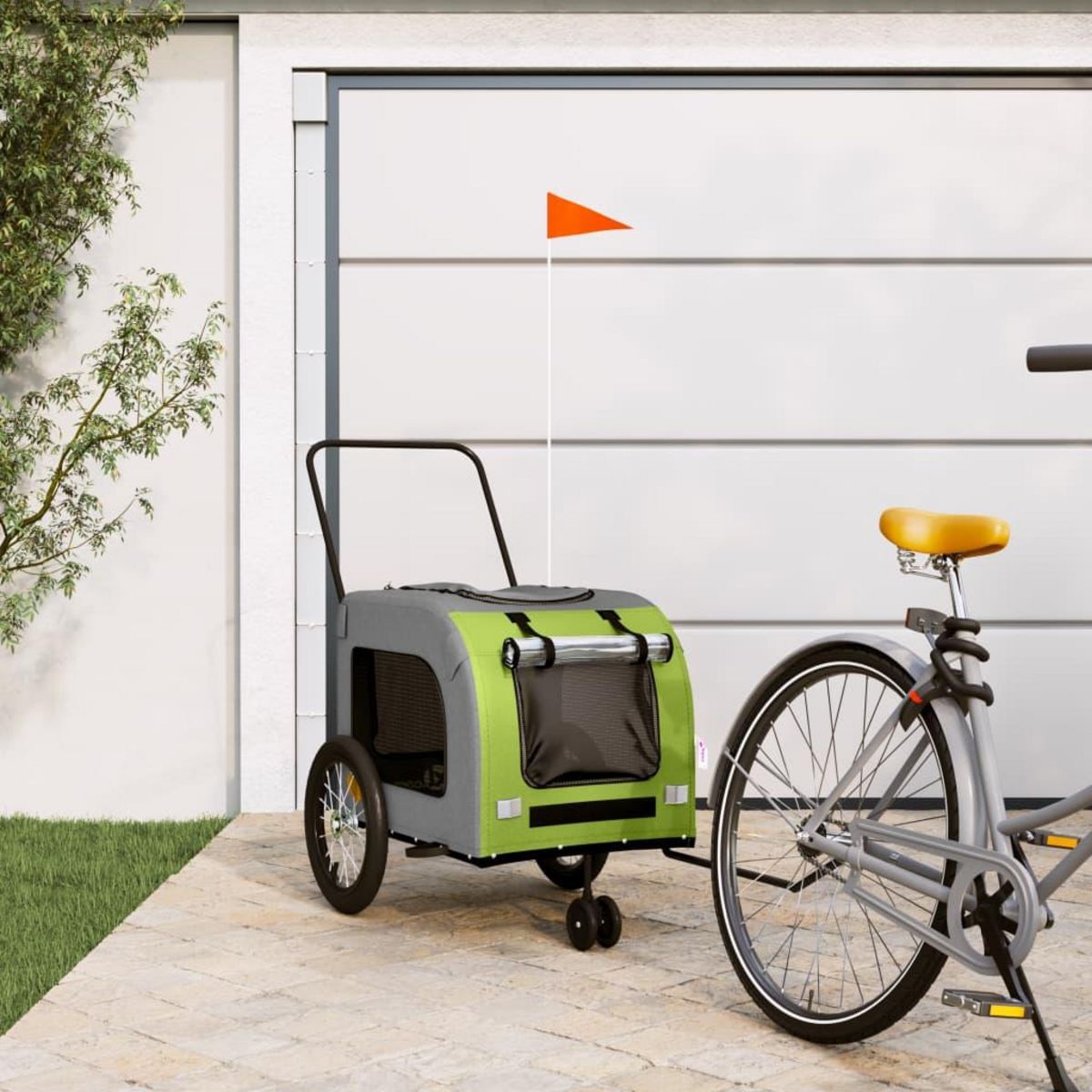 Remorque de velo pour animaux de compagnie vert et gris