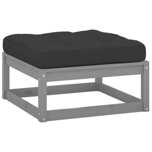 Repose-pied de jardin avec coussin Gris Bois de pin massif