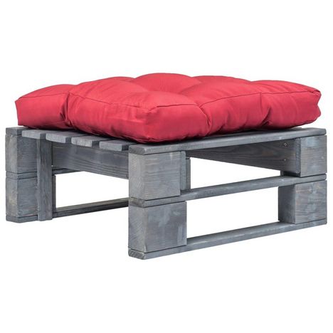 Repose-pied palette de jardin avec coussin en rouge gris bois