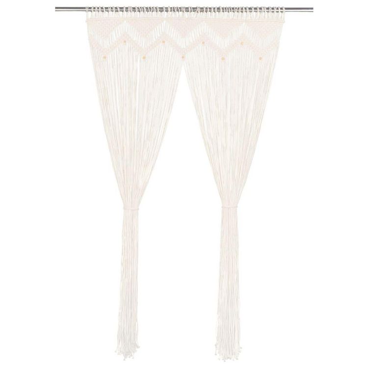 Notre rideau en fils pratique avec macrame constitue un excellent moyen de decorer votre interieur. Il peut etre utilise comme un rideau de porte, un rideau de fenetre, un separateur de piece ou pour une vitrine. Le rideau est en coton et lavable a basse temperature. Si necessaire, le rideau est fac