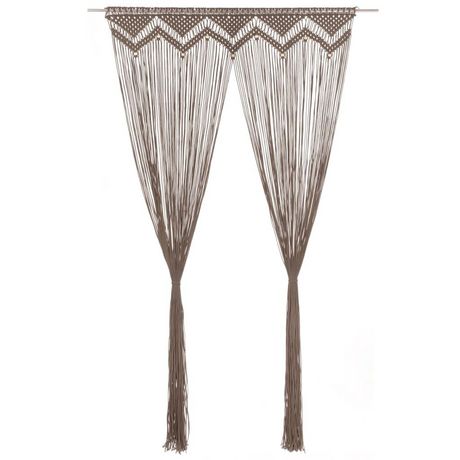 Ce rideau en fils pratique avec macrame constitue un excellent moyen de decorer votre interieur. Il peut etre utilise comme un rideau de porte, un rideau de fenetre, un separateur de piece ou pour une vitrine. Le rideau est en 80 % coton et 20 % polyester et lavable a basse temperature. Si necessair